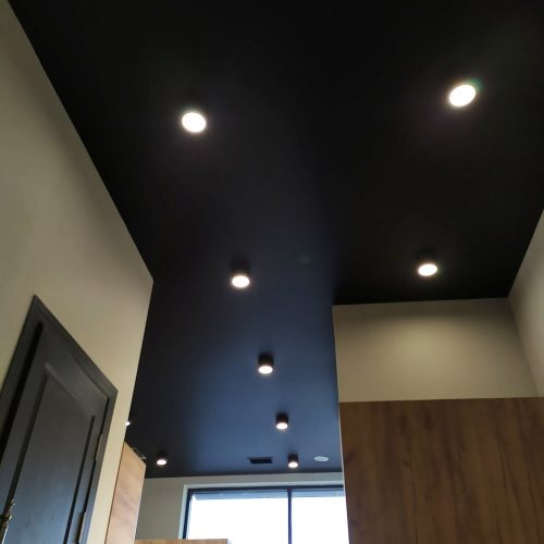Черные натяжные потолки подойдут для самых смелых и оригинальных дизайнерских проектов. Черный цвет – это отличный фон при создании натяжного потолка «звездное небо». Также черный цвет отлично подчеркивает дороговизну вашего интерьера.