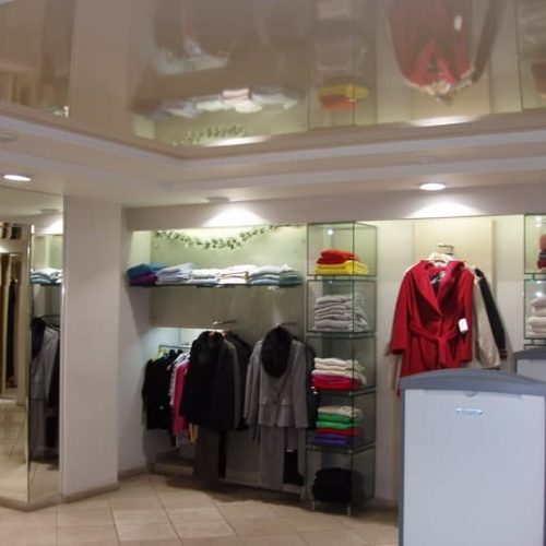 Глянцевый натяжной потолок с трековыми светильниками от 35 руб/м²