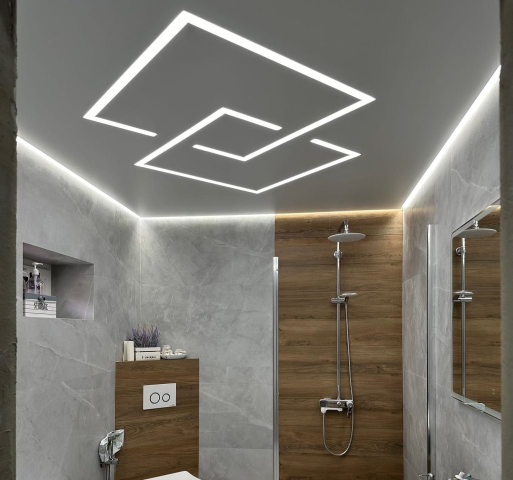 Натяжной потолок лофт со световыми линиями | от 75 руб/пог. м |