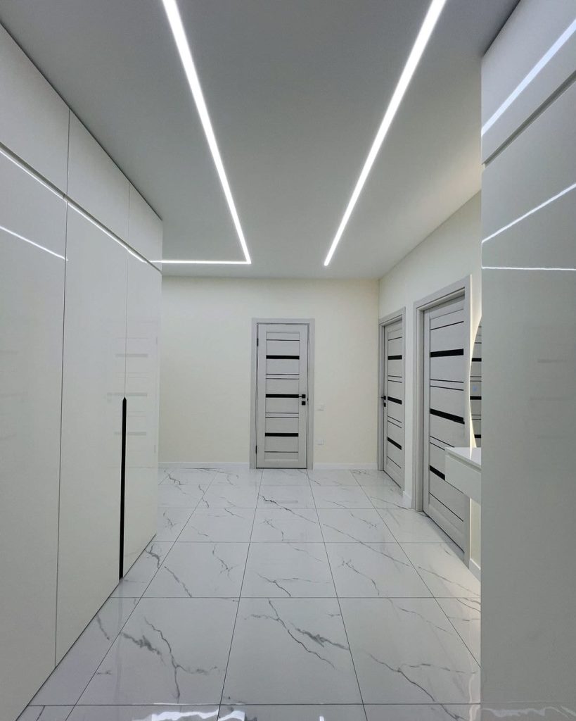 Натяжной потолок с теневым профилем и световыми линиями от 75 руб/пог. м