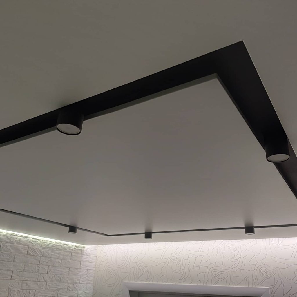 Натяжной потолок с теневым профилем и магнитными трековыми светильниками – П192