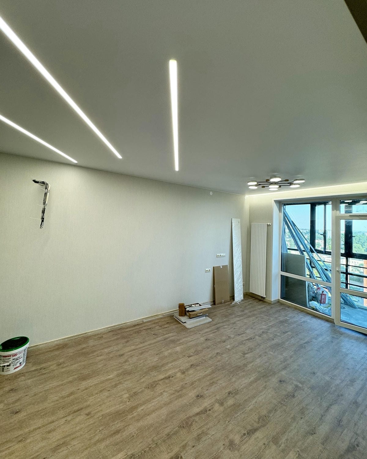 | Освещение | люстра, световые линии |
