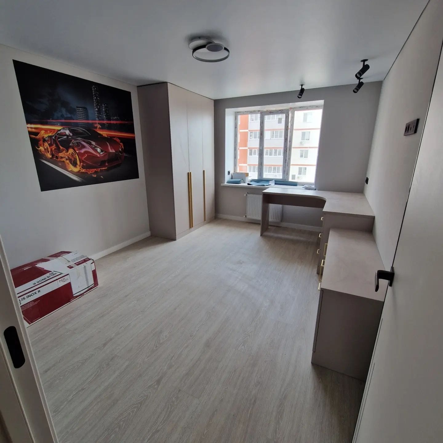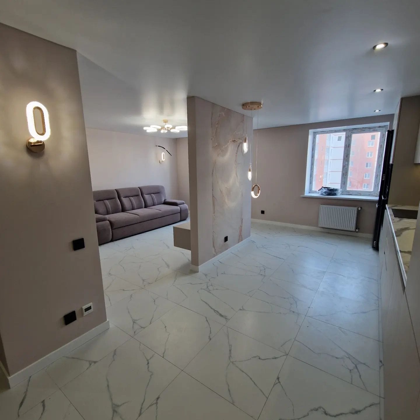 | Освещение | люстра, точечные светильники |