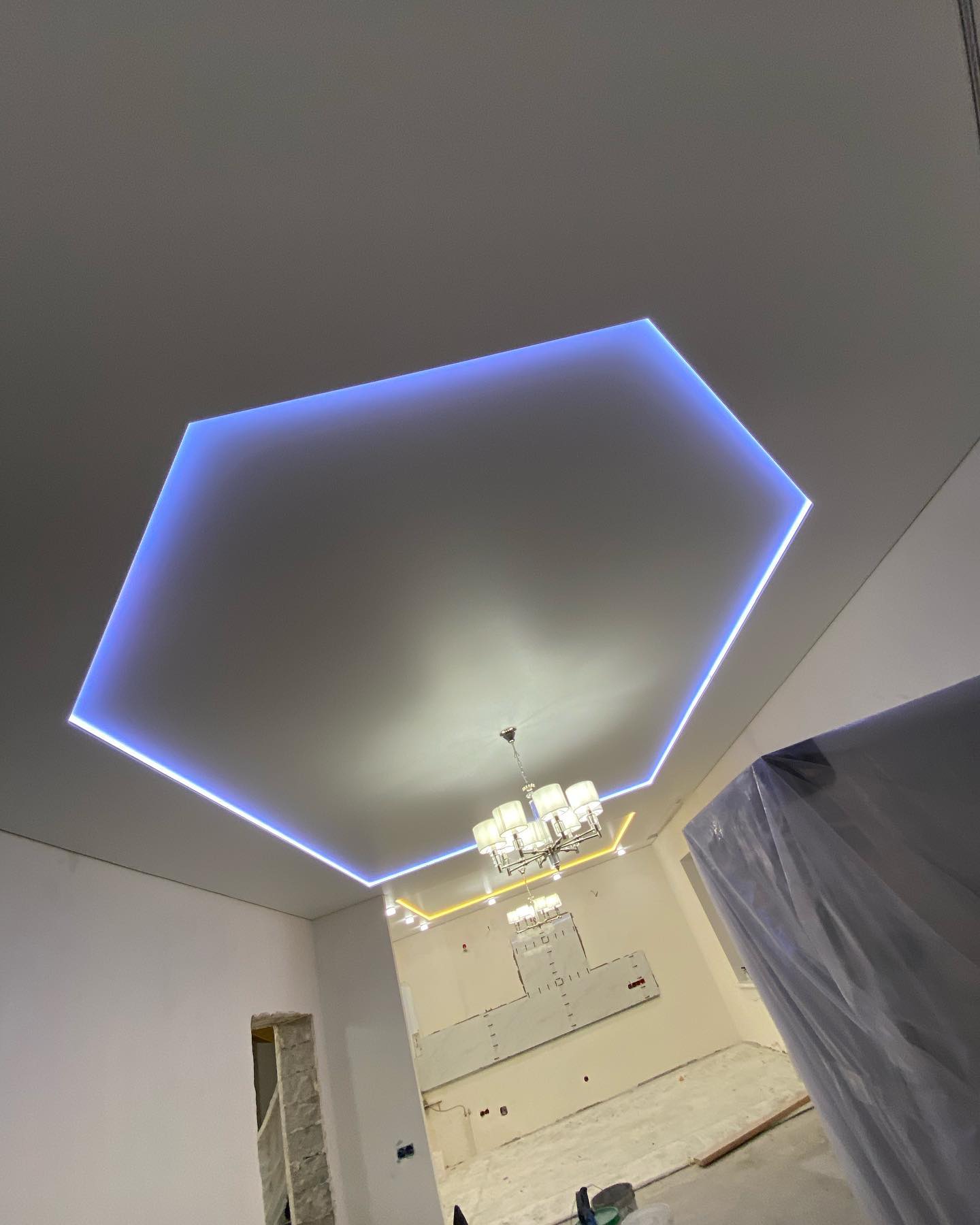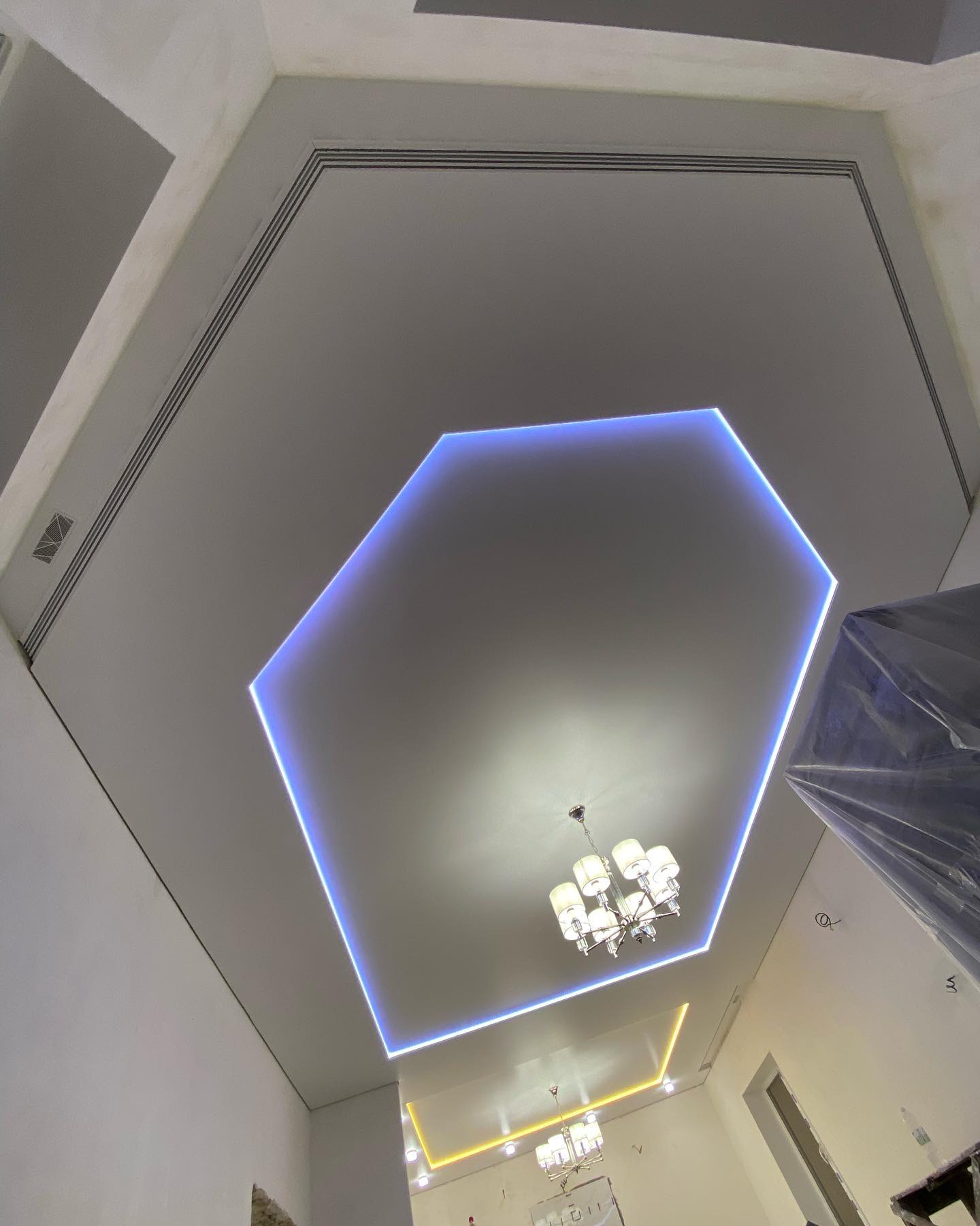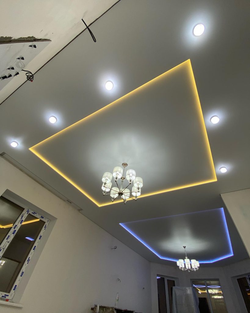 | Освещение | люстра, светодиодная подсветка, точечные светильники |