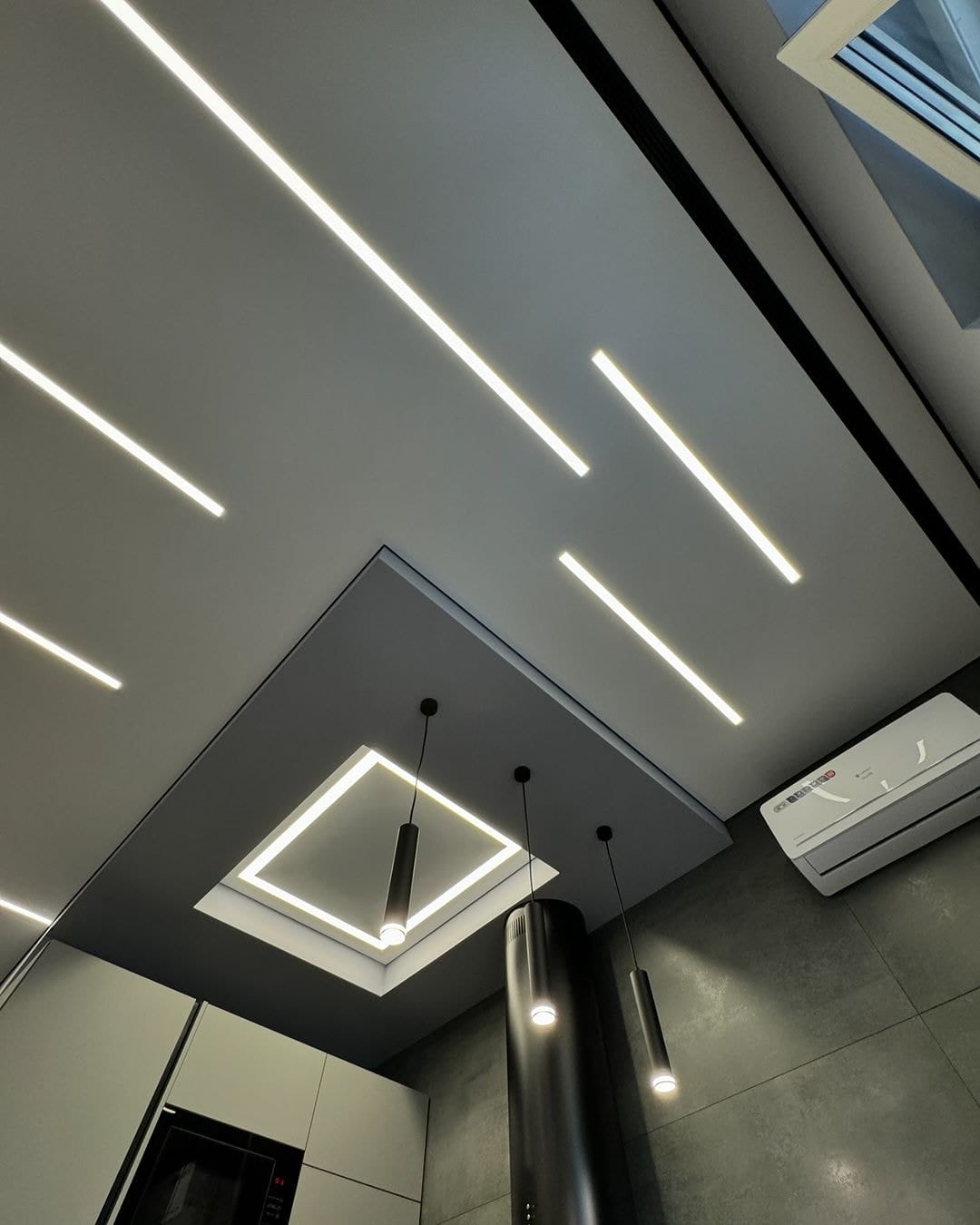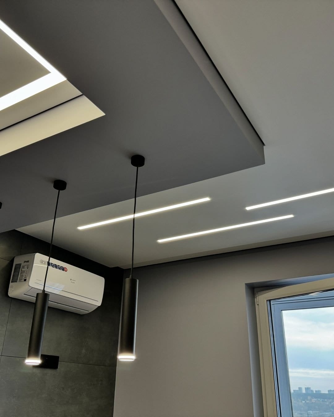 | Освещение | подвесные светильники, световые линии |